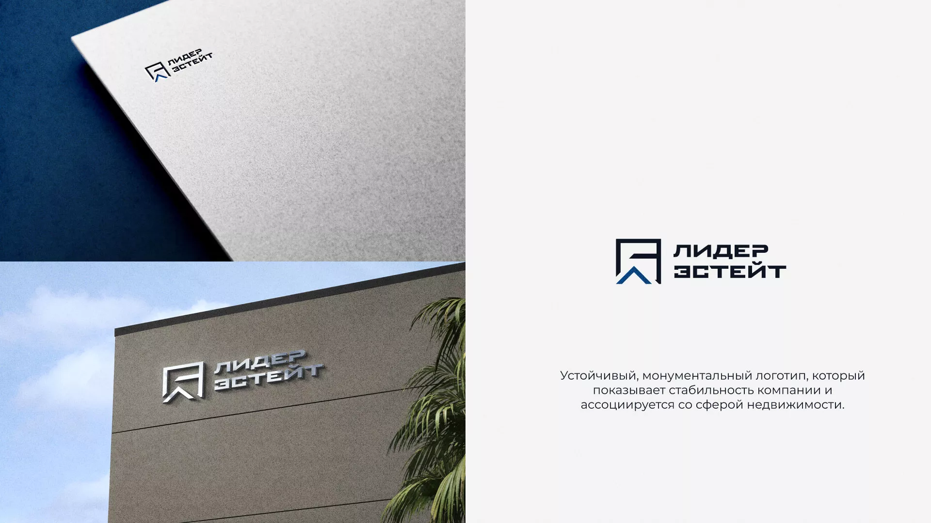 Разработка логотипа в Жиздре для агентства недвижимости «Лидер Эстейт». Устойчивый, монументальный логотип, который показывает стабильность компании и ассоциируется со сферой недвижимости.