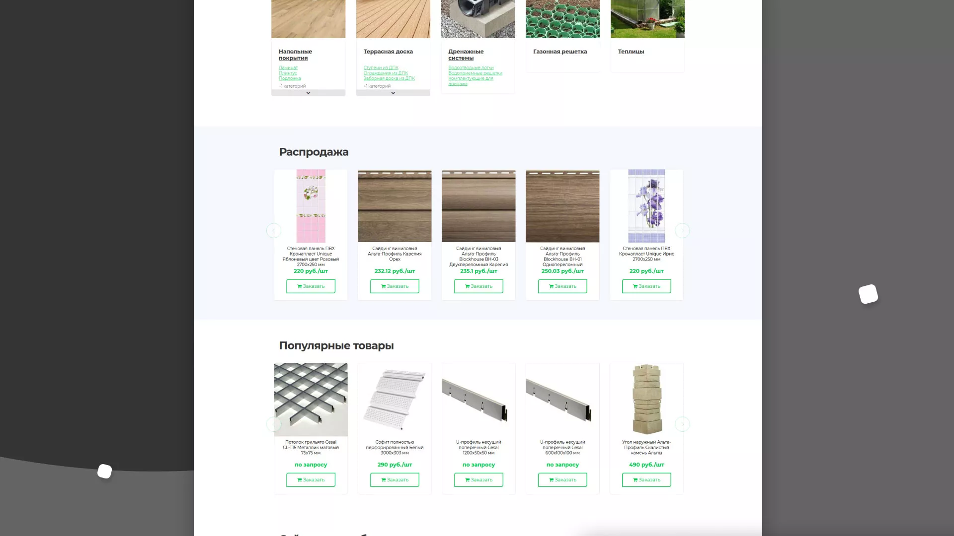 Мы проработали 3D-графику для товаров с целью лучшей визуализации реечных потолков (интерьер для визуализации продукции в сборке) и водосточных систем (схема построения элементов на готовом объекте).