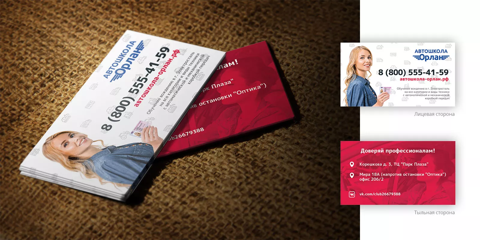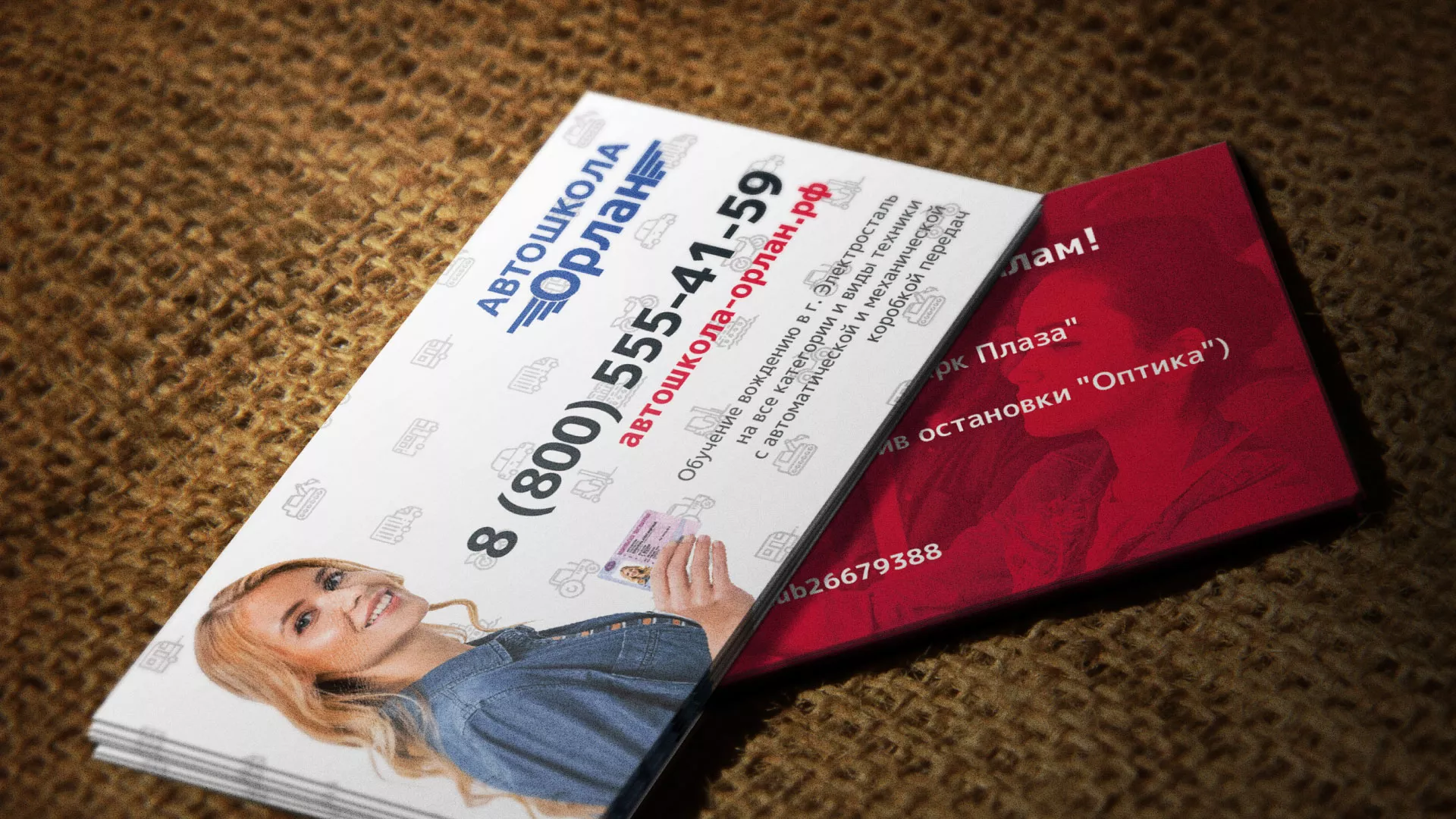 Разработка рекламных визиток автошколы «Орлан» в Жиздре