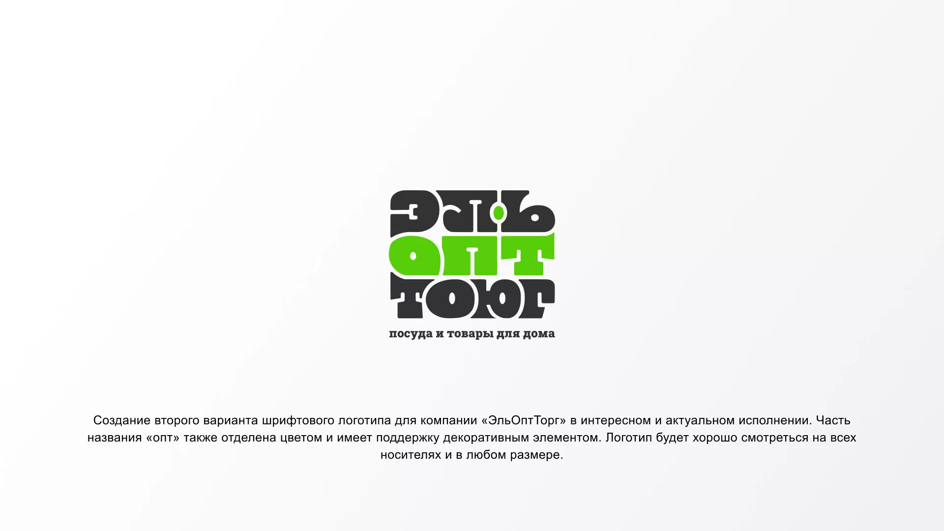 Создание второго варианта шрифтового логотипа в Жиздре для компании «ЭльОптТорг» в интересном и актуальном исполнении. Часть названия «опт» также отделена цветом и имеет поддержку декоративным элементом. Логотип будет хорошо смотреться на всех носителях и в любом размере.
