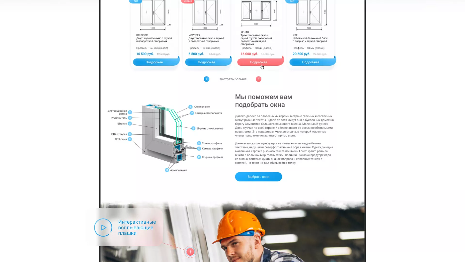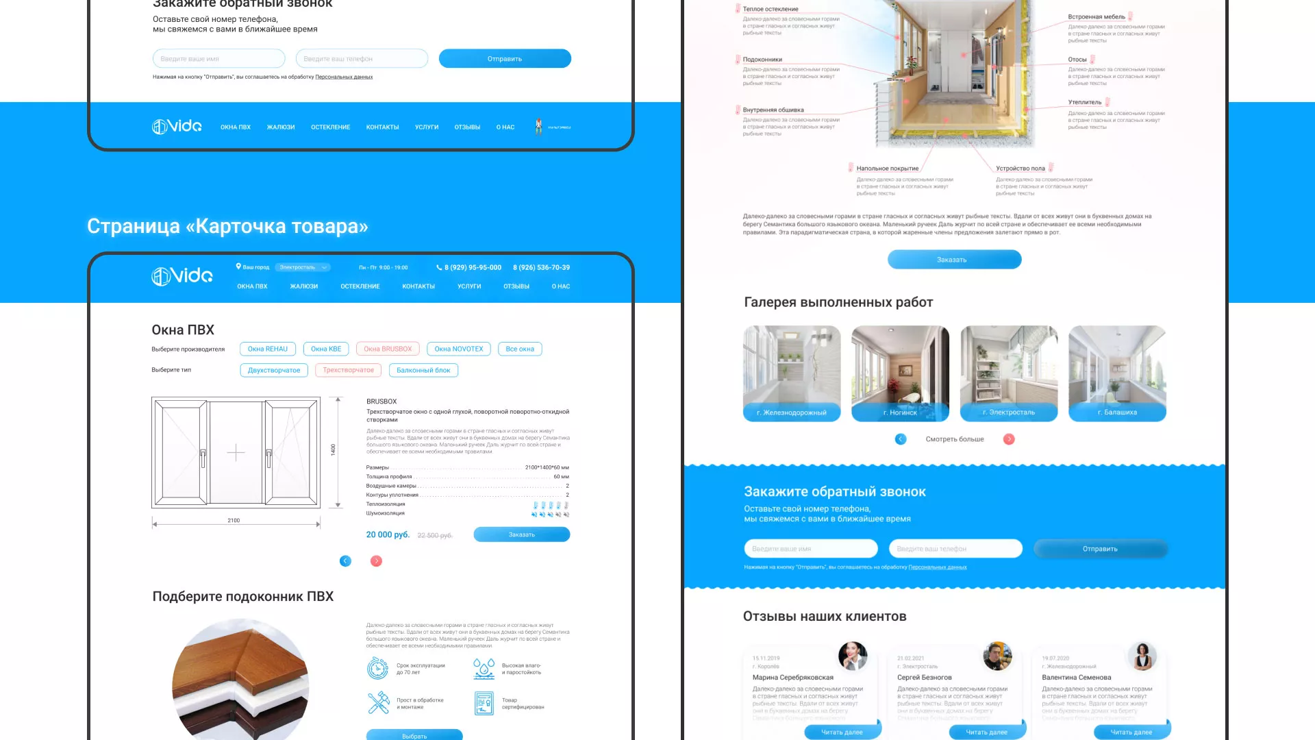 Задачей по проекту было — разработать светлый, дружелюбный дизайн сайта-каталога компании «Окна ВИДО» в Жиздре, интерфейс взаимодействия с пользователем и проработать внутренние страницы, наглядно отобразив информацию иллюстрациями.